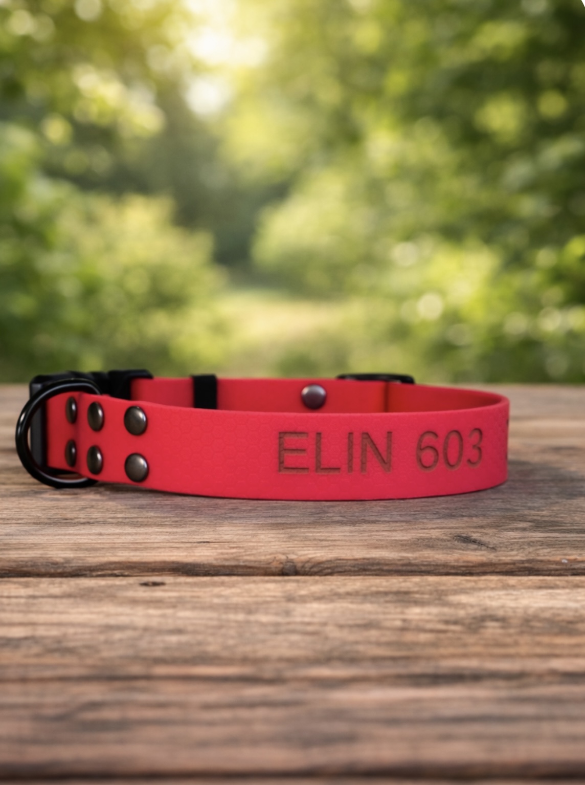 Šířka obojku 25 mm, obojek s vygravírovaným jménem a kontaktem.