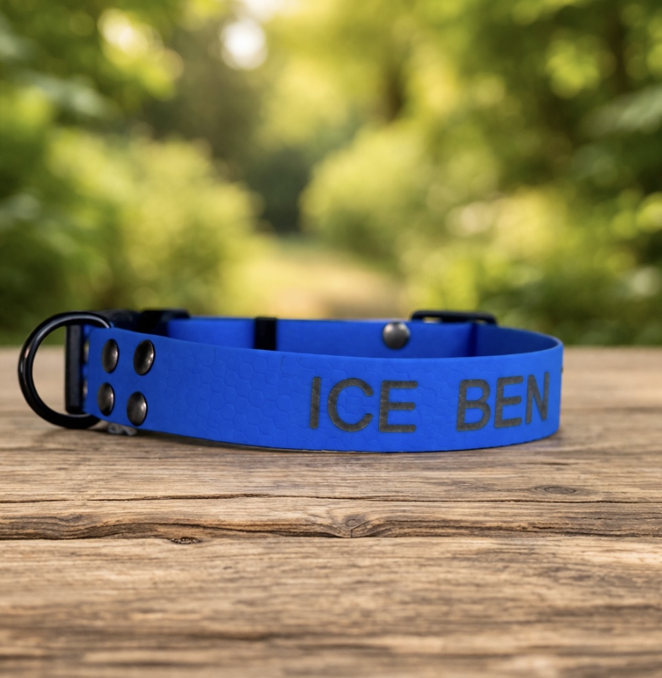 Šířka obojku 25 mm, obojek s vygravírovaným jménem a kontaktem.